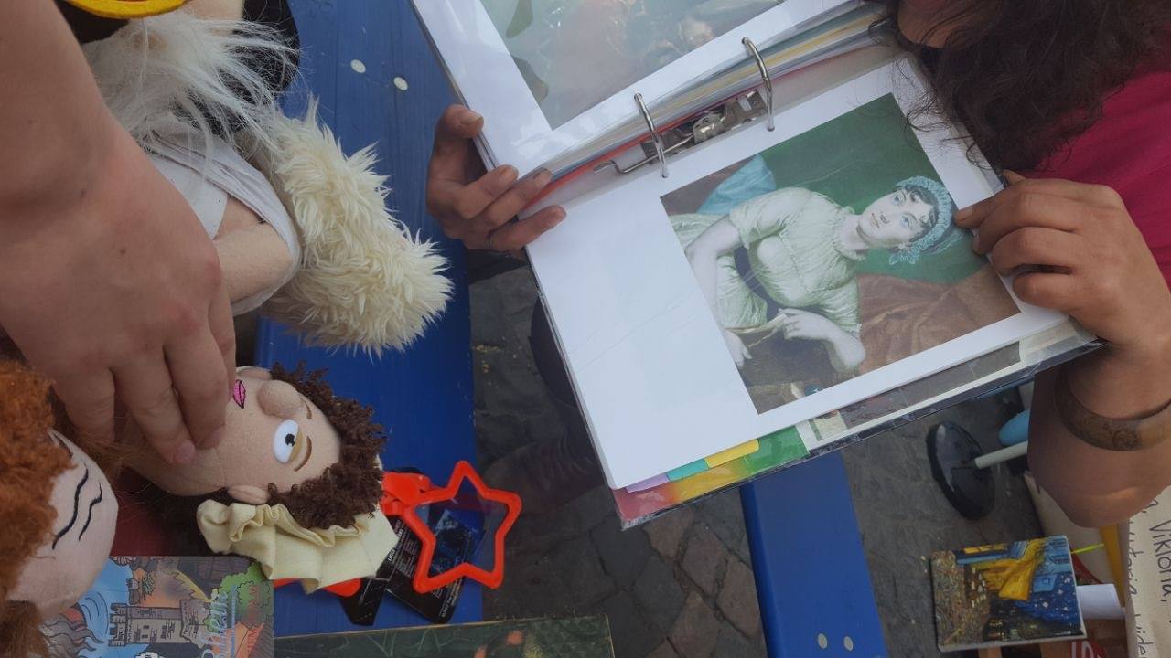 Previous Image Next Image children matching Jane Austen doll to picture, Bonn, Fest der Kulturen Jane Austen doll and Jane Austin photo – matching game